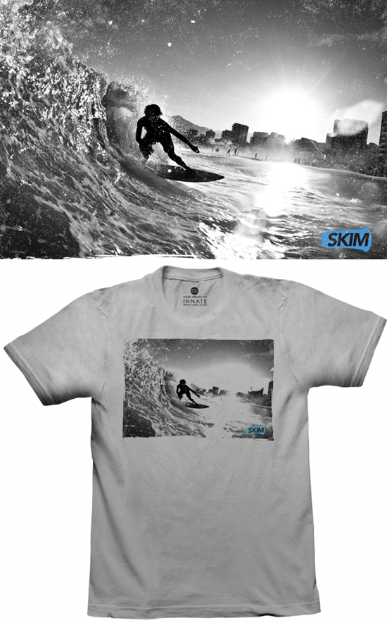 Skim Clothing used a photo by Brazilian photographer Andre Magarao to create this t-shirt design. He shot the photo of Lucas Fink at Ipanema Beach. From there Matt McDonald worked with the guys at INNATE to create this halftone print.