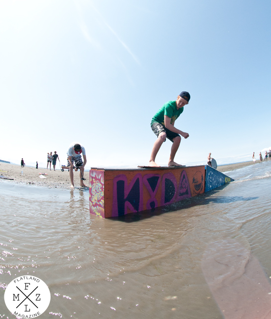 It was a beautiful day for a skim contest in White Rock, British Columbia. KYDA Skimboards put on a great contest for both participants and the crowd. Here are a couple photos from the contest and results. More photos will be posted in the next issue of Flatland Magazine and on the Flatland Magazine Facebook page.